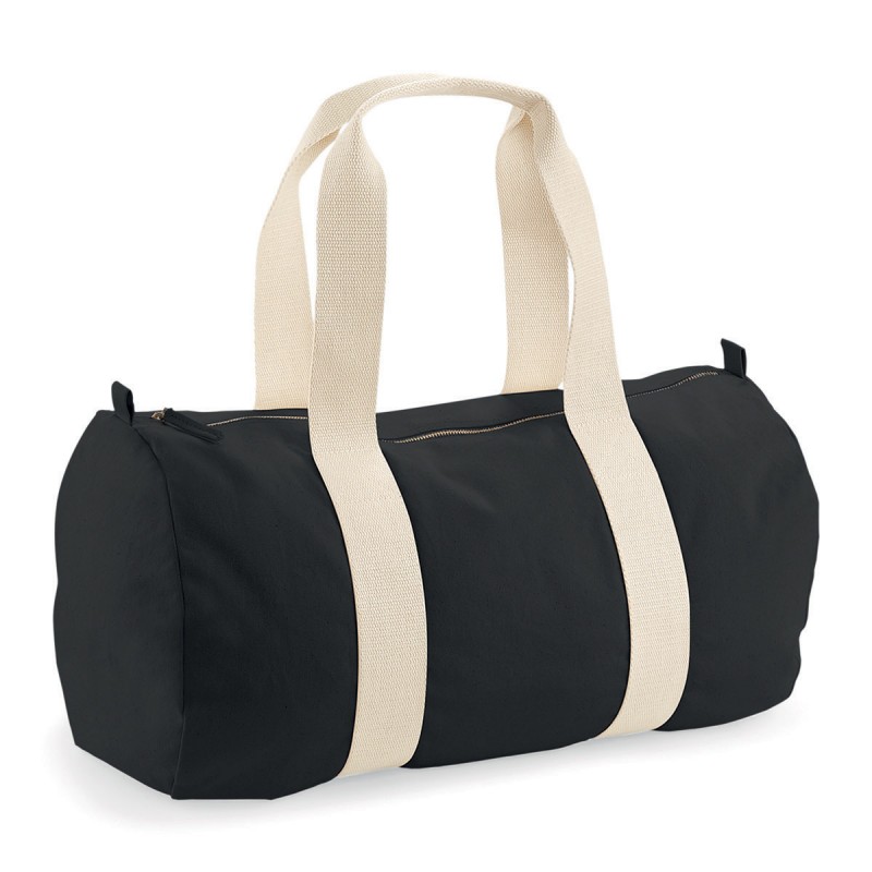 100% cotone organico Canvas. Borsone in tessuto certificato Control Union. Chiusura con zip, manici a tracolla. Dimensioni: 50 x 25 x 25 cm, capacita': 20 litri, area di stampa parte anteriore: 13 x 12 cm, estremita': 15 x 15 cm. 350g/m2