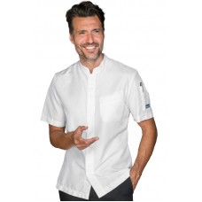 La Giacca da Cuoco Classica Bottoni a Pressione a mezza manica bianco. Ottima divisa per uomo e donna da chef in cucina, ristorante o catering. Taschi..
